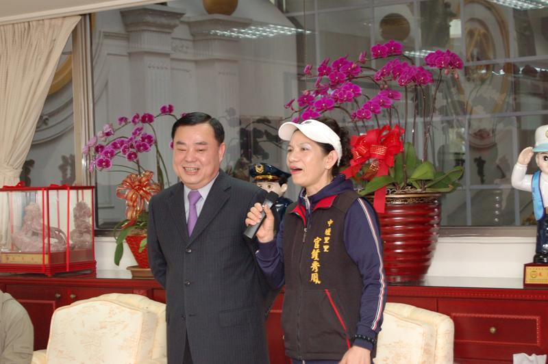 邱議長頒贈議會會旗給官鍾秀鳳...