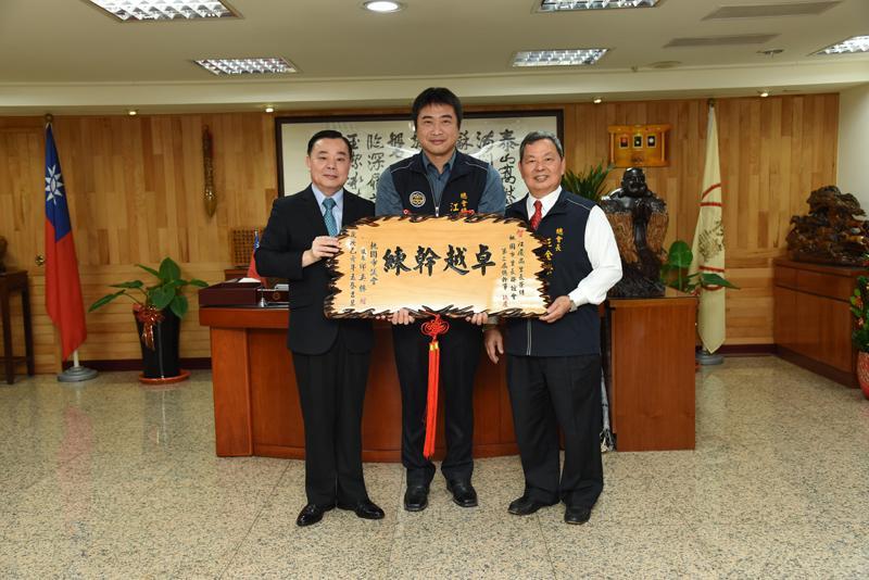 邱議長贈匾給江慶尚總幹事