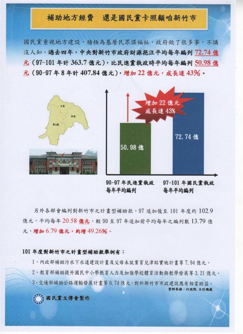 補助地方經費 還是國民黨卡照顧咱新竹市