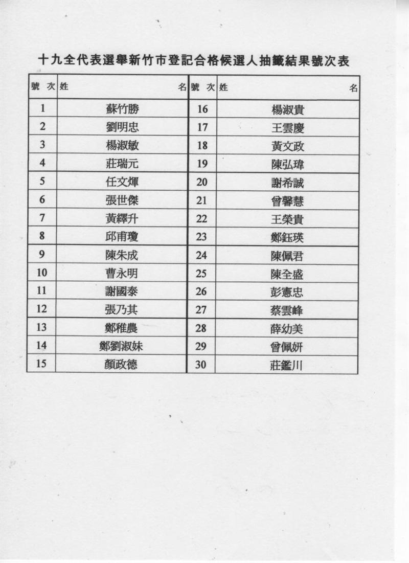 號次表