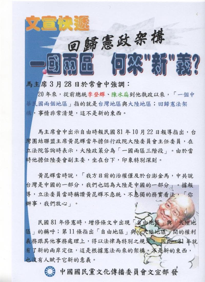 「回歸憲政架構 一國兩區何來...